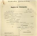 Registo de velocípede de marca Helios, com o nº 249, em nome de Jean Sénillon, morador em Cacém de Cima.