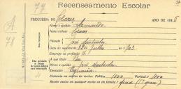 Recenseamento escolar de Armando Martinho, filho de José Martinho, morador na Eugaria.